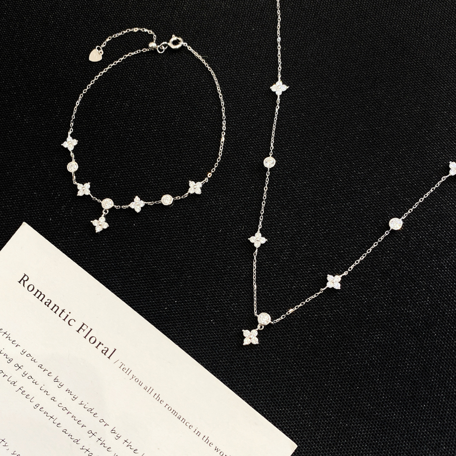 S925 Sterling Silver Diamond Four-Leaf Clover Bracelet Necklace Women's Simple Elegant Accessible Luxury High-End Exquisite Flower Hand Jewelry