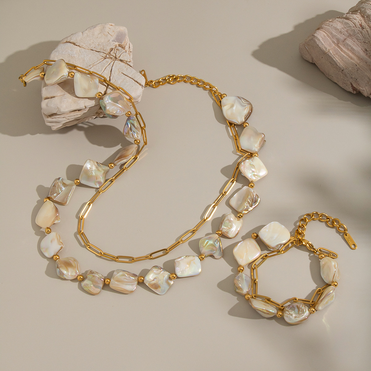 Casual and Personalized Irregular Natural Shell Beaded Double-Layer Bracelet Necklace Women's Suit Combination Stainless Steel Does Not Fade