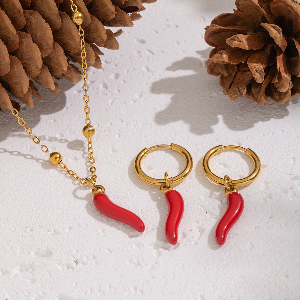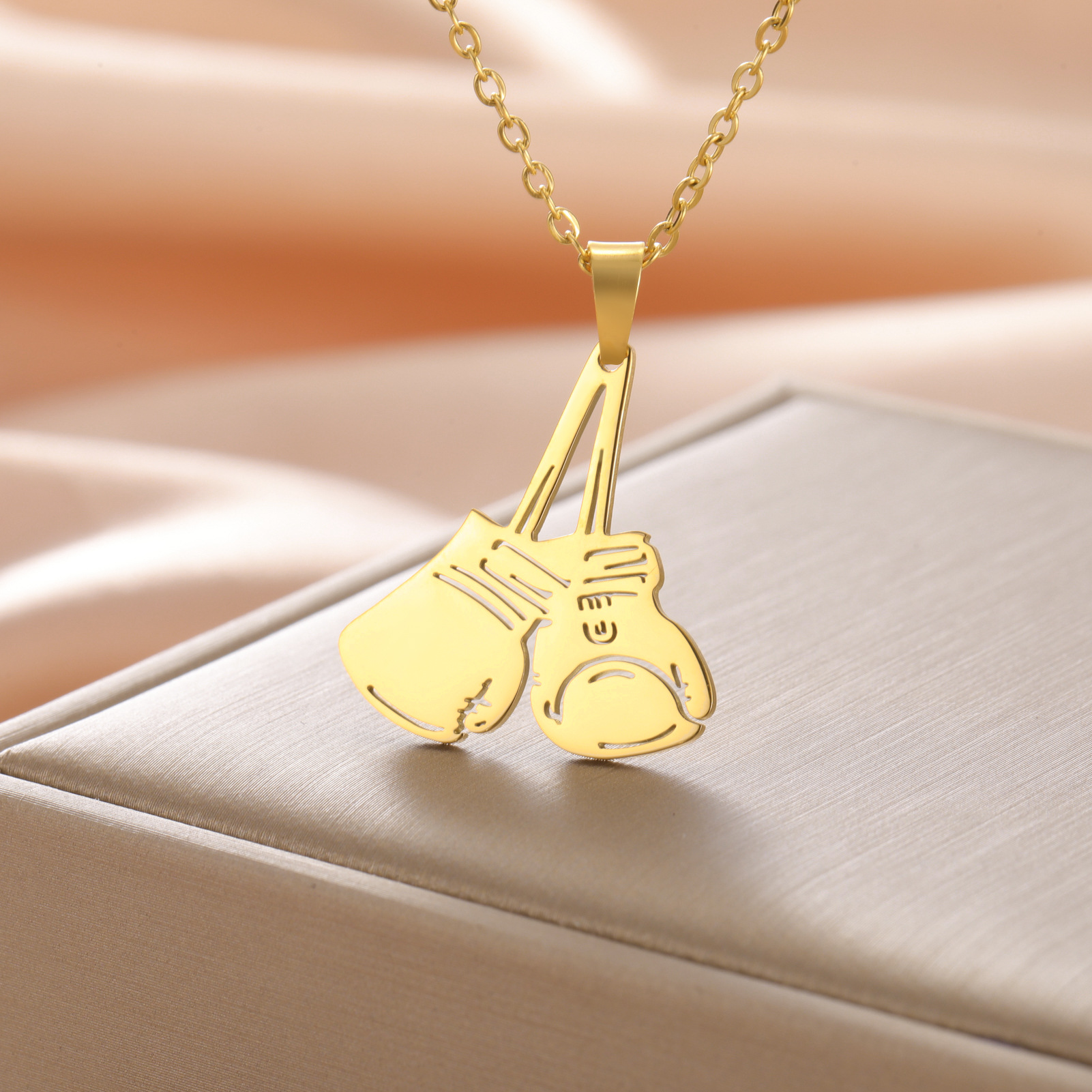 in stock wholesale titanium steel set of gloves pendant necklace stainless steel 18K gold gold plating men and women necklace