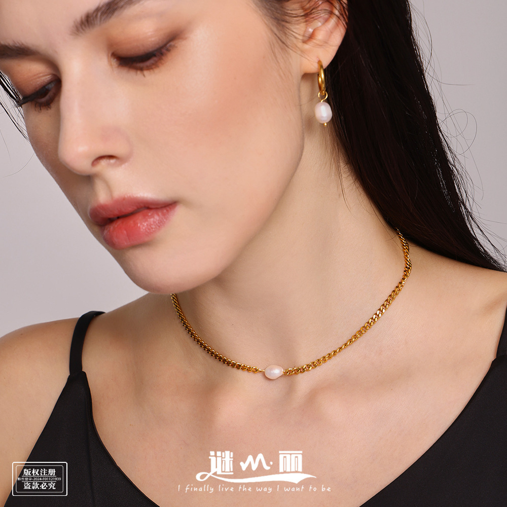Mili's New Titanium Steel Chain Simple Single Pearl Necklace Pendant Earrings Accessible Luxury Elegant Electroplated 18K Real Gold