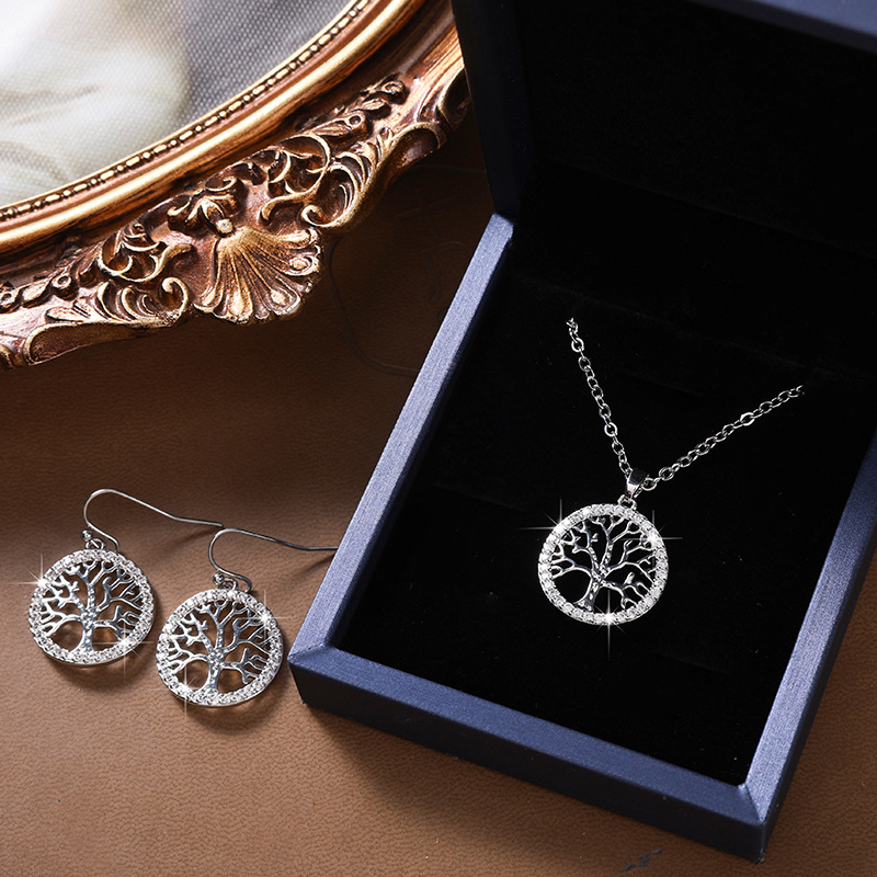 European and American Style Popular Round Hollowed-Out Tree of Life Pendant Necklace for Women, Copper Inlaid Zircon Necklace, Geometric Collarbone Chain