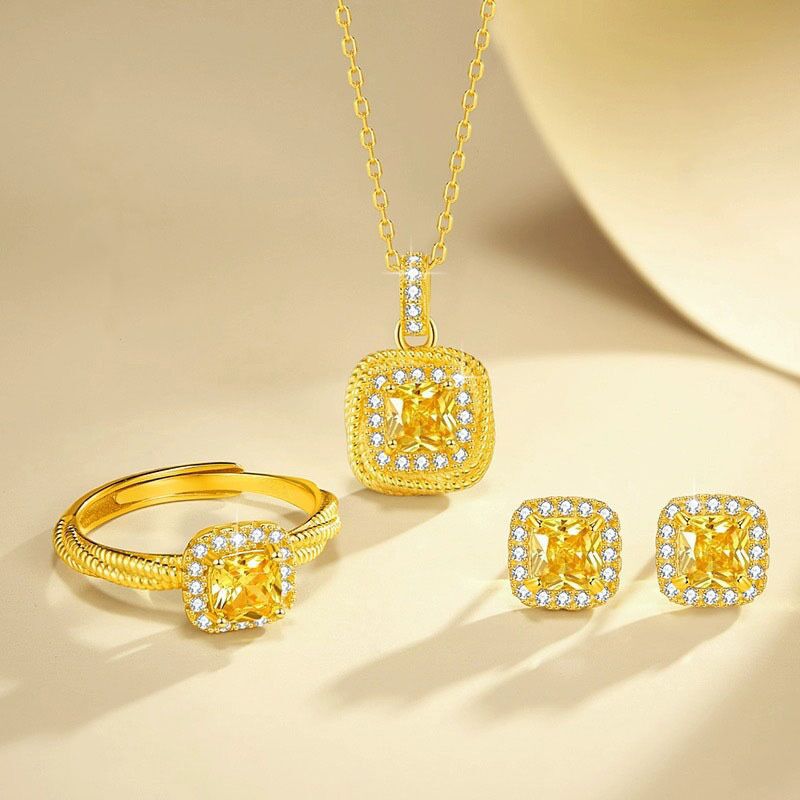 High-end niche small sugar three-piece set ring necklace pendant earrings women's jewelry manufacturers wholesale simple