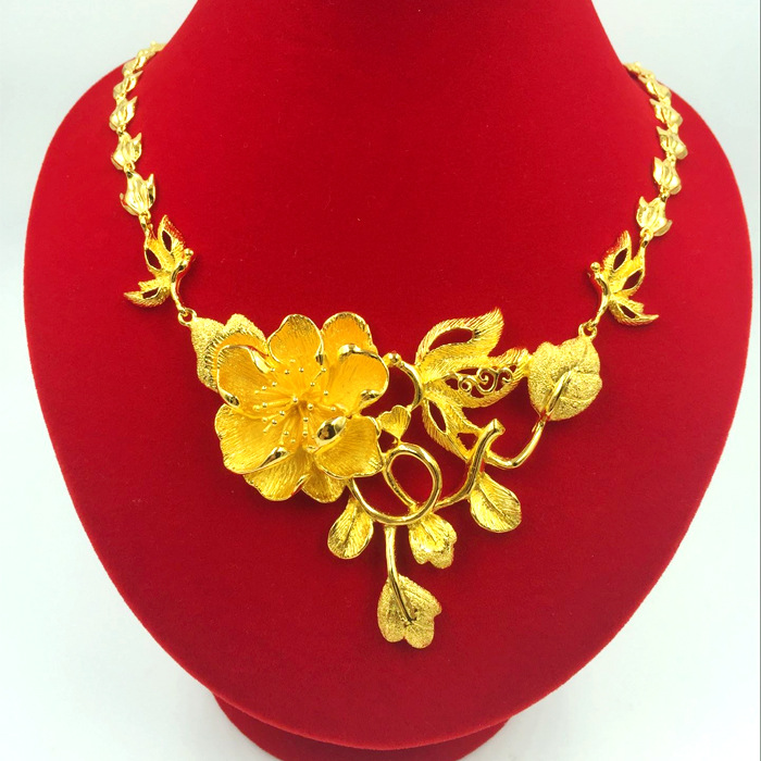 4 Wedding Necklace Bride Wedding Gold Jewelry Copper Plated Gold Necklace Sand Gold Dragon and Phoenix Bracelet Three Gold Set for Women