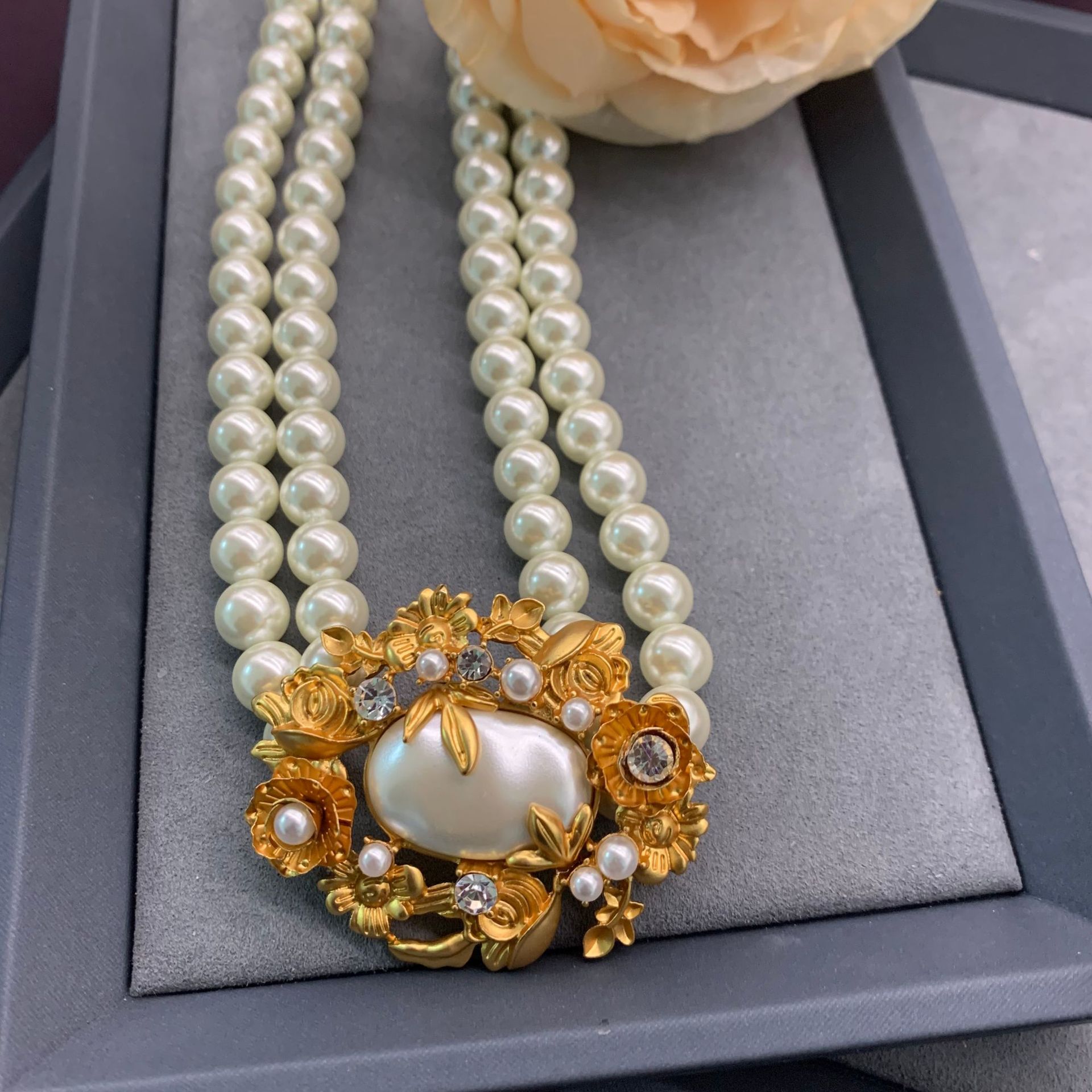 [Genghao] Qingdao Vintage Original Stereo Design Embossed Flower Pearl Set Real Gold Electroplating