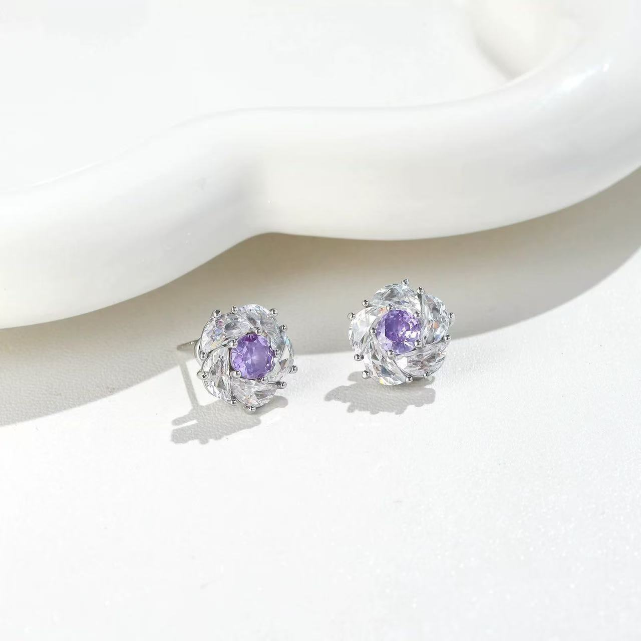 French Retro Brushed Buchi Four-Leaf Clover Blue-Purple Set Bracelet Necklace Earrings Palace Style Light Luxury Versatile