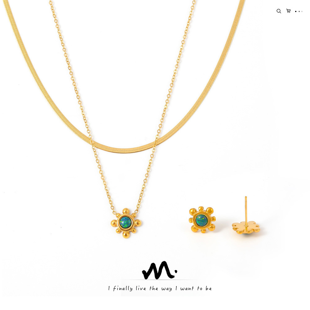 European and American Small and Exquisite Sunflower Natural Gemstone Earrings Clavicle Necklace Titanium Steel Plated 18K Real Gold Stacking Set