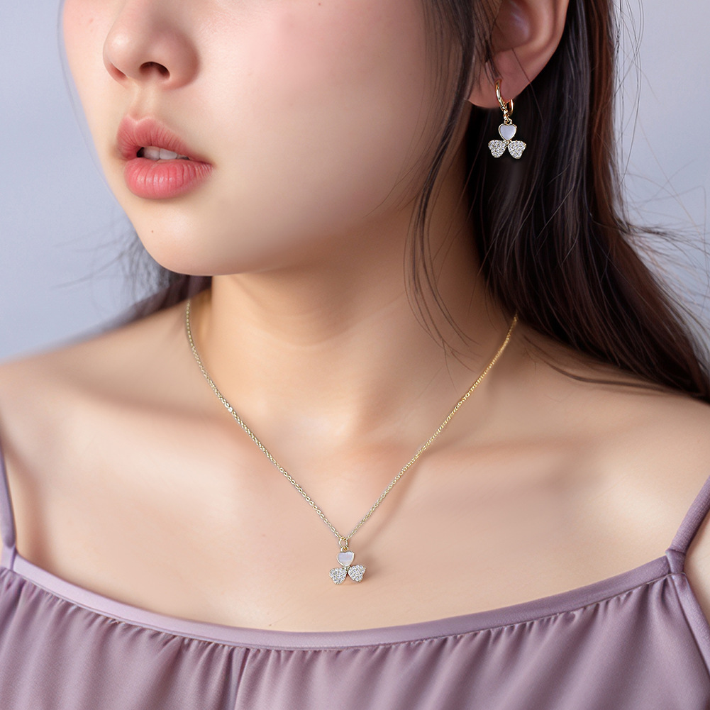 Color-Preserving 18K Gold-Plated Clover Necklace Women's Fashionable Clavicle Chain Earrings Clover Necklace Set