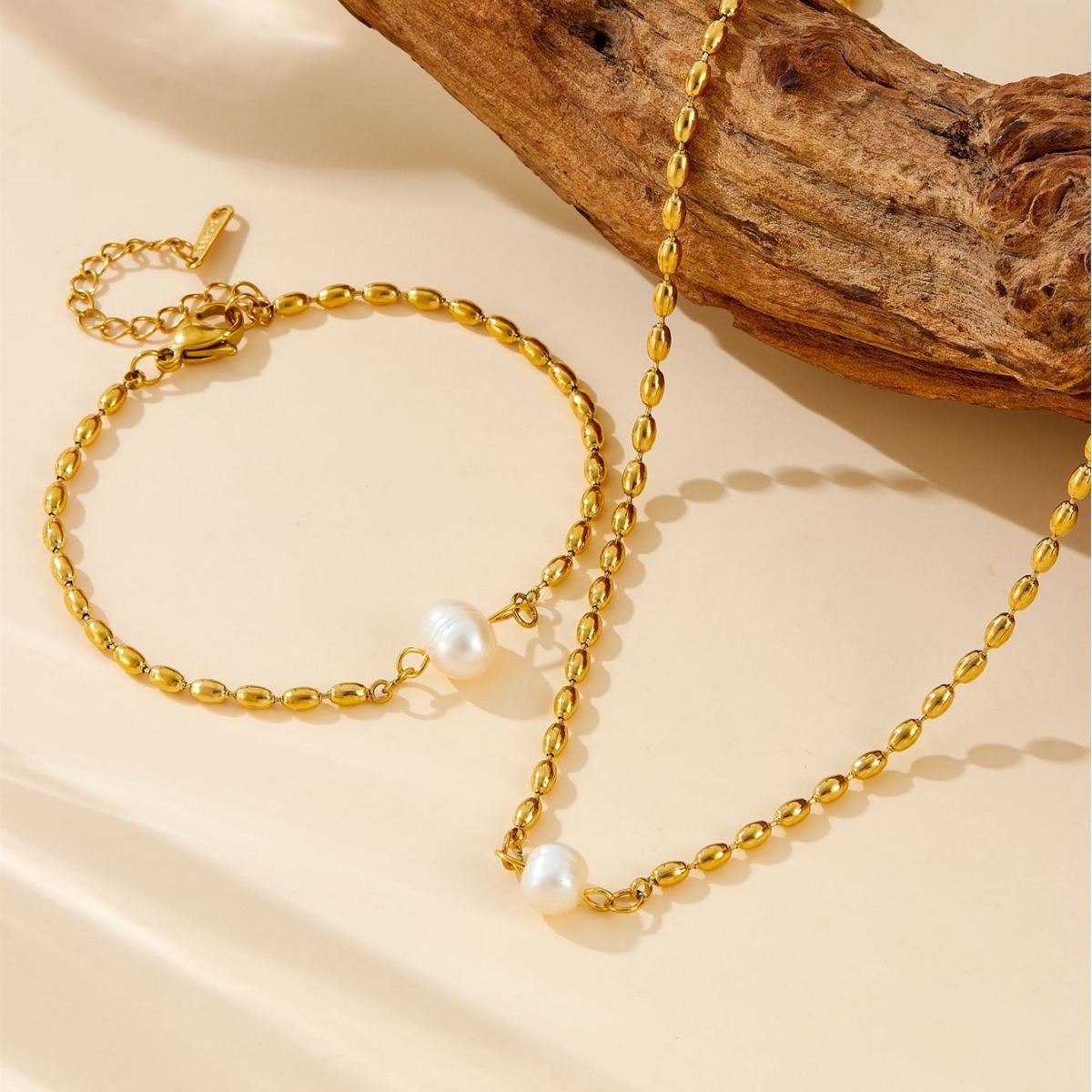 Aogu European and American Cross-Border Fashion Simple Real Gold-Plated Pearl Titanium Steel Necklace Women's Ins Niche Stylish Versatile Jewelry