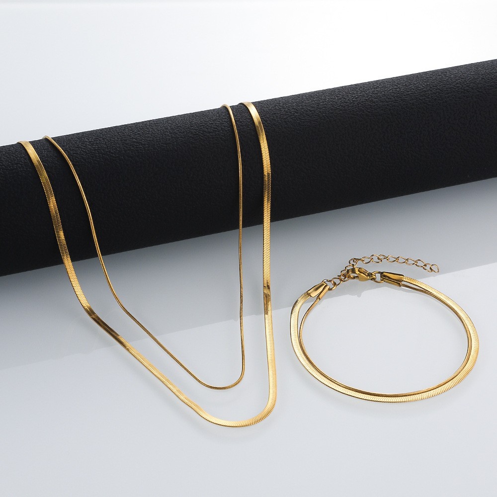 Cross-Border European and American Flat Snake Bone Chain Stainless Steel Bracelet for Women, Real Gold Titanium Steel Bracelet DIY Simple Jewelry Wholesale