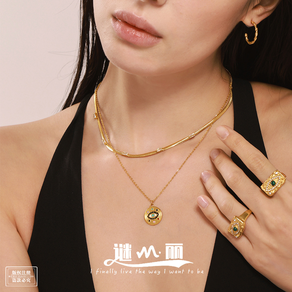 Mystery Devil's Eye Zircon Necklace Ring Creative Trendy Titanium Steel 18K Electroplated Real Gold Color-Retaining In-Stock Jewelry