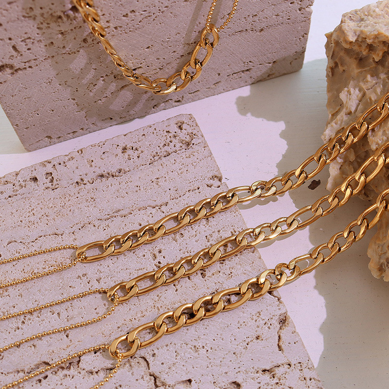 Ins Cool Style European and American Accessible Luxury Double-Layer Ball Bead Necklace Stitching Bracelet Set Titanium Steel Plated 18K Real Gold Jewelry