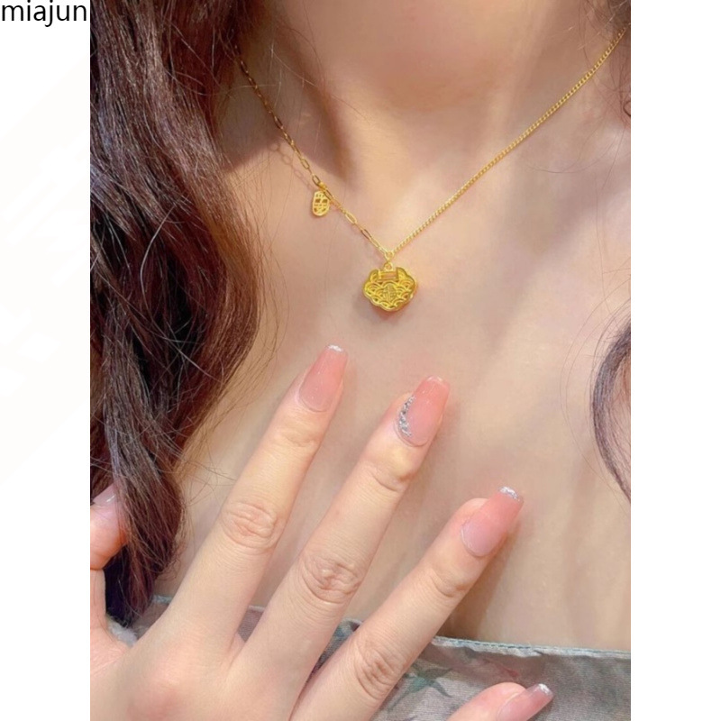 Authentic Gold Auspicious Cloud Peace Lock Necklace Chinese Style Ancient Method 999 Pure Gold Blessing Wish Lock Set Chain Women's Pure Gold Lock