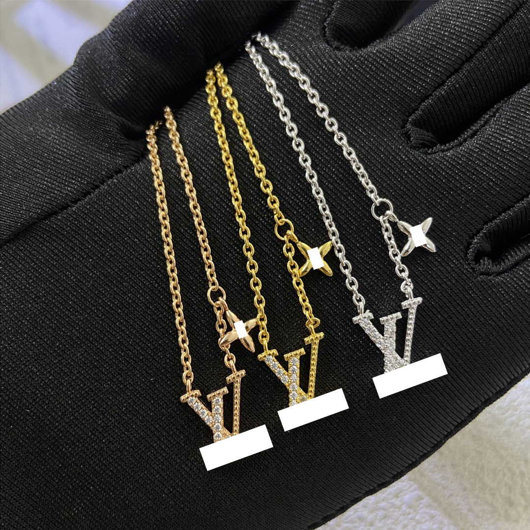 Classic Popular Letter V Half-Drill Pendant Necklace for Women, Niche Design with Zirconia Clavicle Chain, Light Luxury Jewelry
