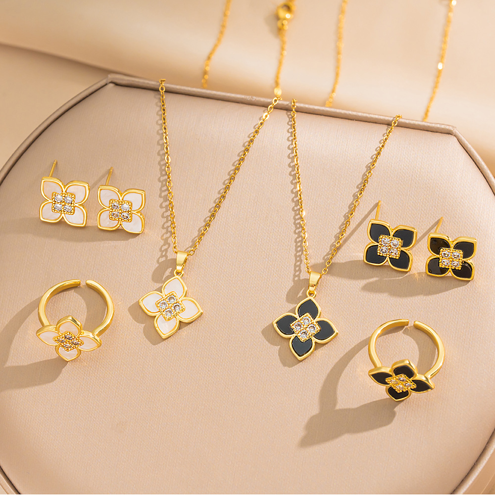 Europe and the United States cross-border new lucky four-leaf clover necklace earrings suit small fresh simple all-match four-leaf flower three-piece set