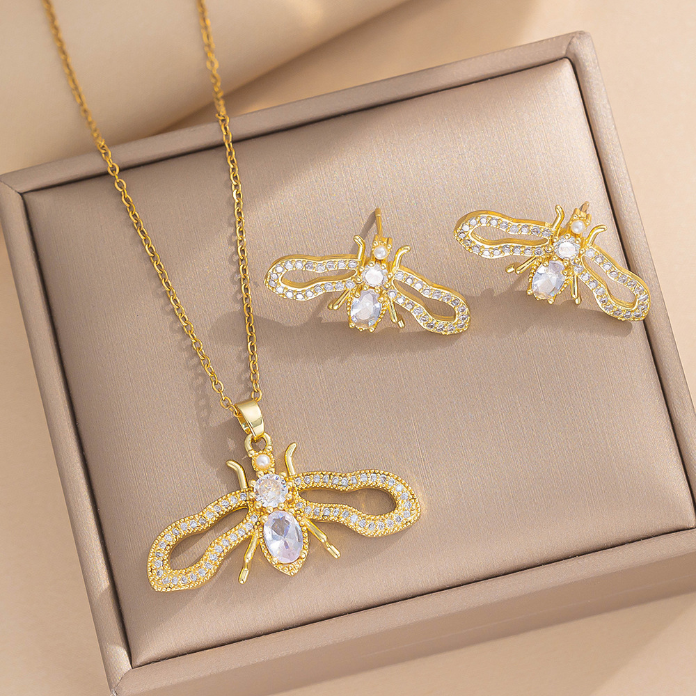 [suit] high quality Temperament Light Luxury Zirconium Heavy Industry Real Gold Electroplated Copper Micro Earrings Necklace suit Combination