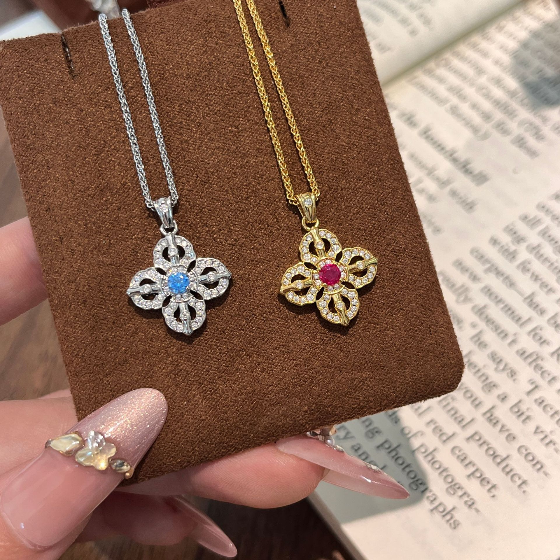 New Chinese-Style Cross Vajra Pestle Ocean Blue Sapphire Necklace Double-Sided Wearable High-End Light Luxury Versatile Jewelry Set