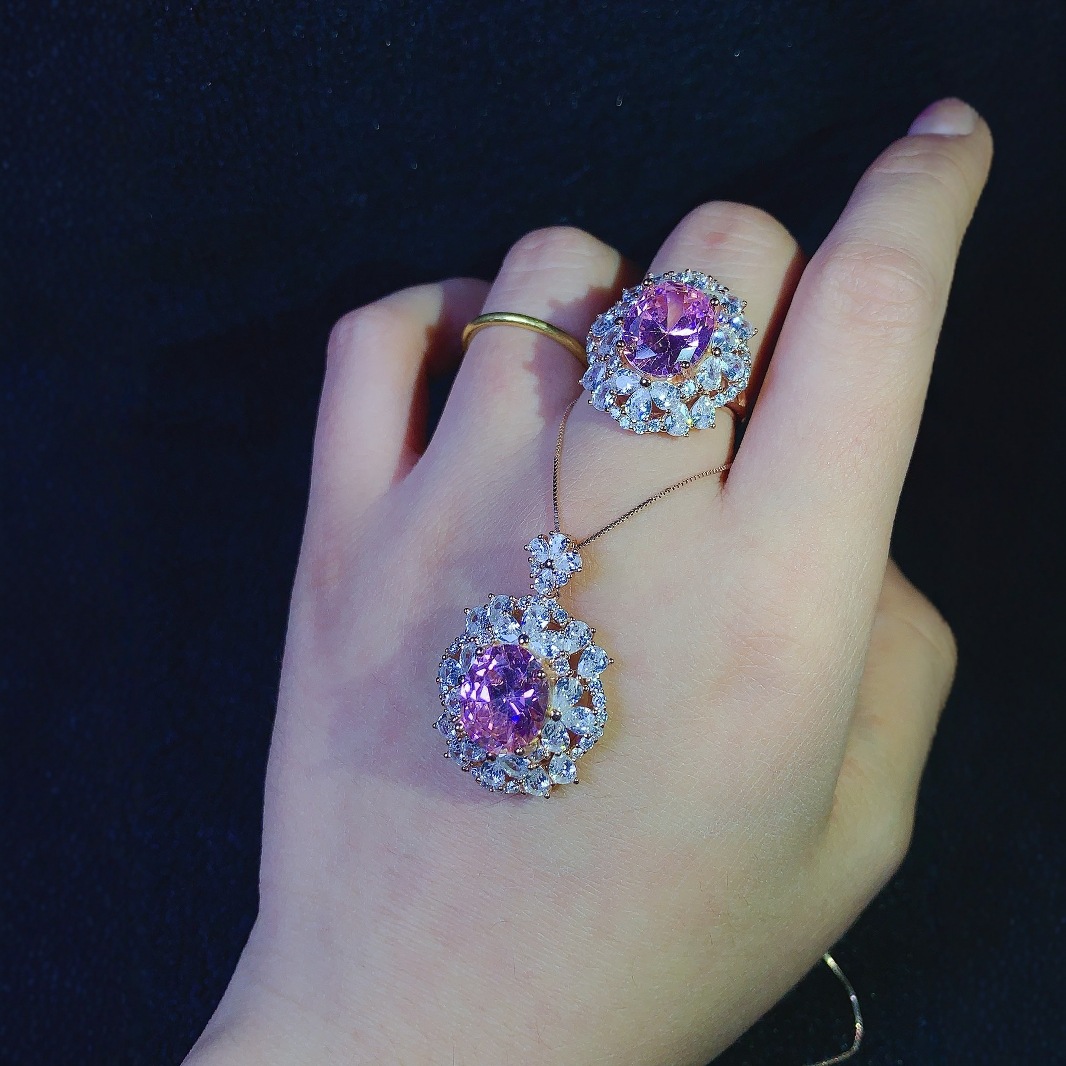 [suit] high quality Temperament Light Luxury Zirconium Heavy Industry Real Gold Electroplated Copper Micro Earrings Necklace Ring Combination