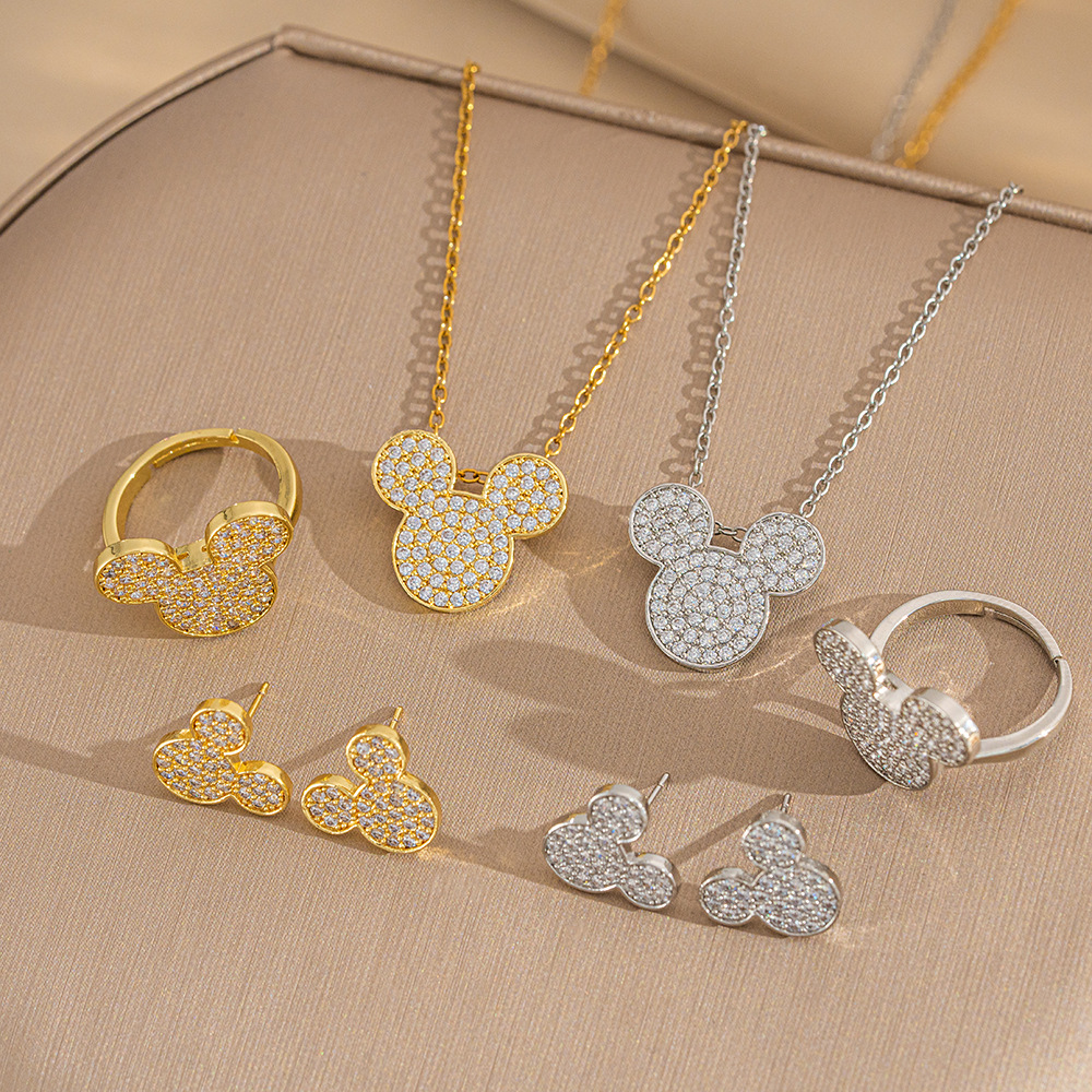 [Set] High-Quality, Accessible Luxury, Full of Zirconium, Mickey, Real Gold, Electroplated Copper Micro-Embedded Earrings and Necklace Set Combination