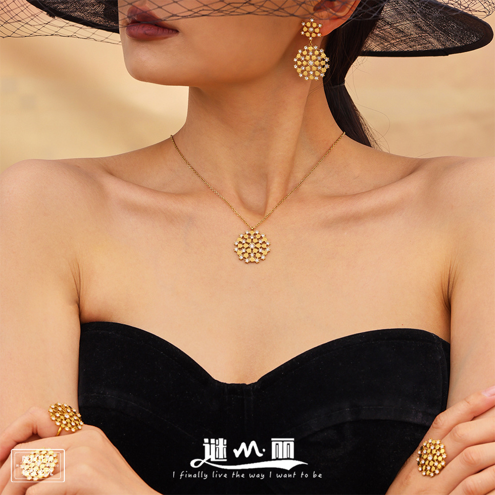 [suit] high quality Temperament Light Luxury Zirconium Heavy Industry Real Gold Electroplated Copper Micro Earrings Necklace suit Combination