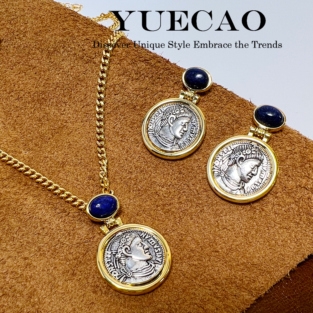 European and American vintage Roman coin necklace 24k real gold double-sided relief ancient coin portrait middle-ancient earrings suit