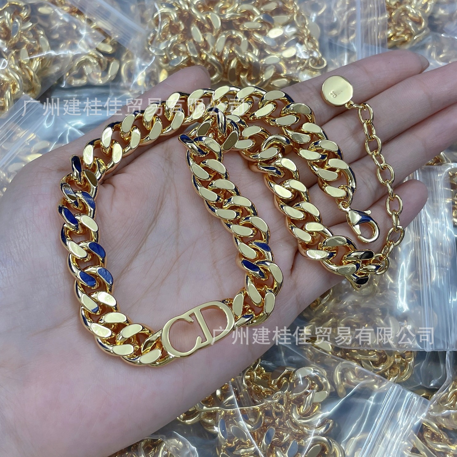 Real Shot of Dijia High-Quality Letter Cd Gold Color Cuban Chain Set Necklace Women's Fashion Bracelet Women's Factory Direct Sale