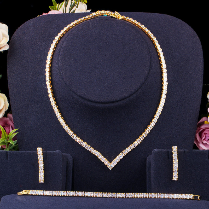T0165 Korean Bridal Wedding Dinner Accessories Full Set Zircon Necklace Earrings Bracelet Three-Piece Set Factory Outlet