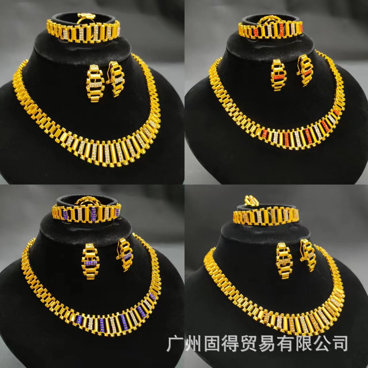 Middle East Cross-Border Best-Selling Jewelry Set Dubai Jewelry Women's 24K Gold-Plated Necklace Bracelet Earrings Ring Four-Piece Set