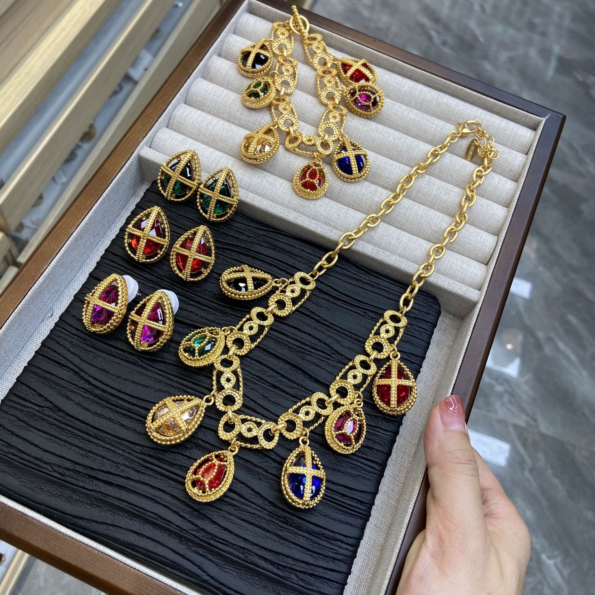 in stock factory wholesale Europe and the United States 18k gold electroplated titanium steel super temperament middle ancient court wind neck chain collar suit