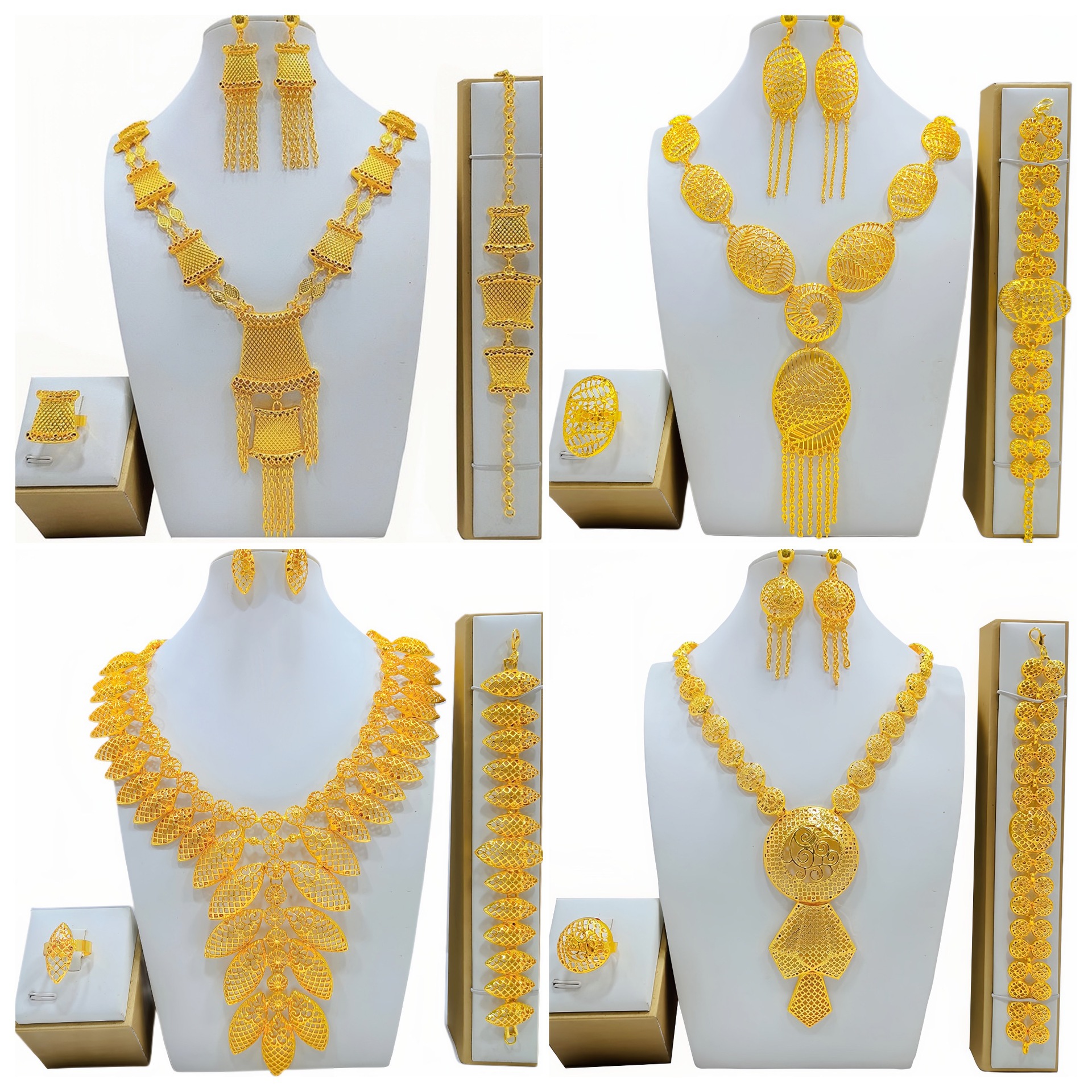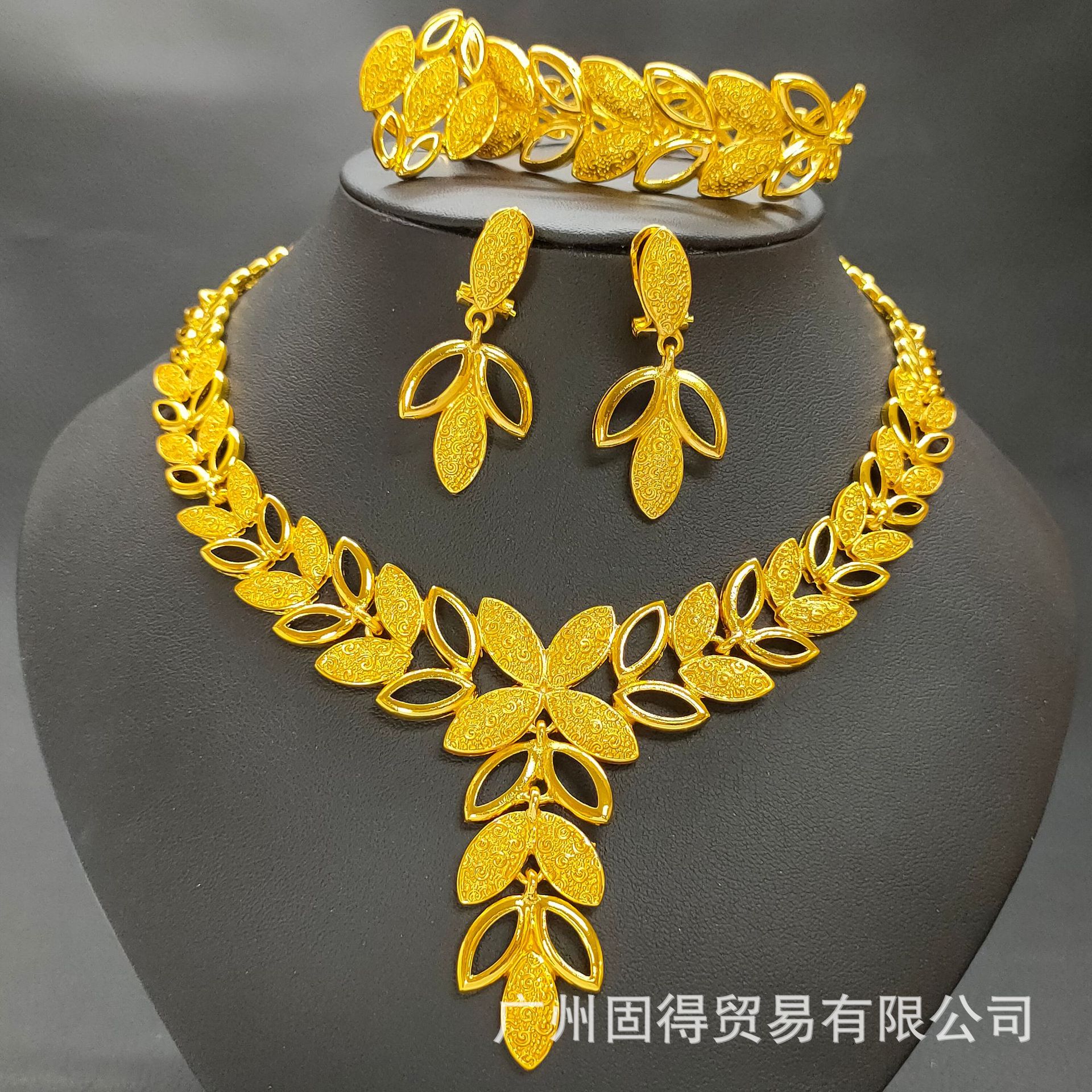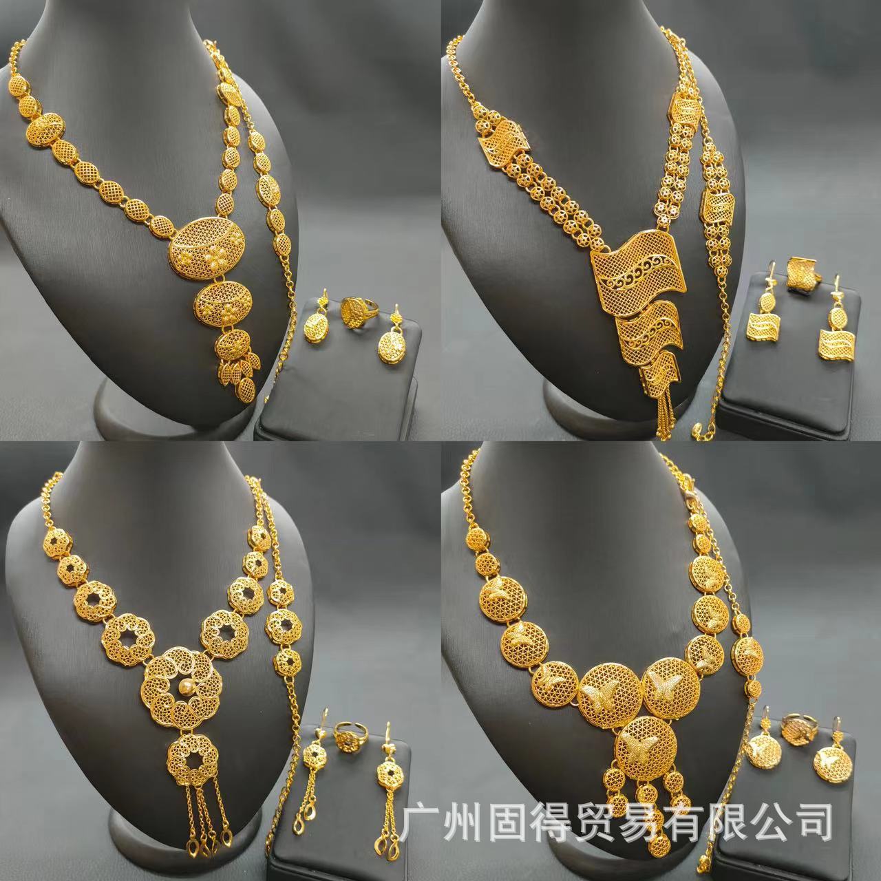 Cross-border New Hot Selling Women's Jewelry Set Dubai 24k Gold Wedding Bride Gift Set Spot Wholesale