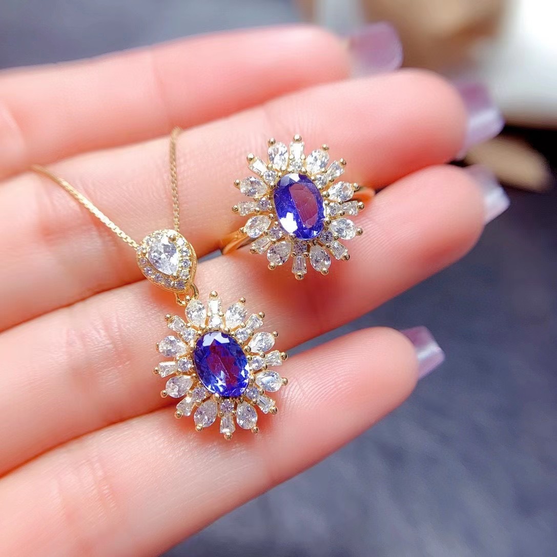 Factory direct color treasure jewelry 925 silver inlaid natural tanzanite suit main stone 5*7mm style luxury generous