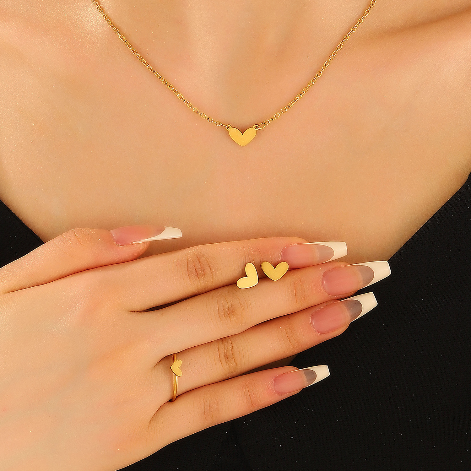 European and American Ins Simple Love Stainless Steel Earrings Ring Necklace suit Cross-border Women's Jewelry suit Three-piece Set