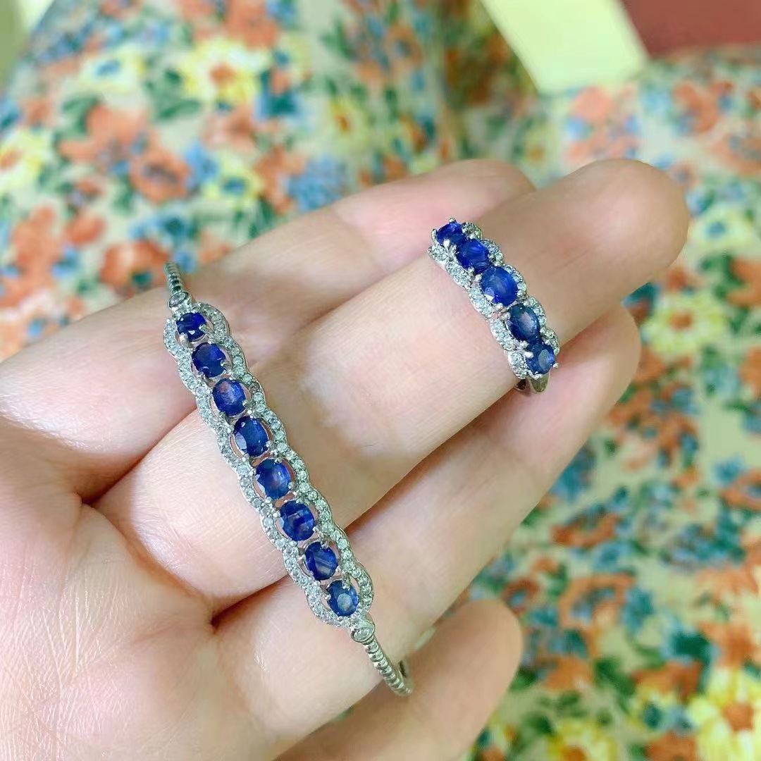 Natural Sri Lanka Sapphire suit 925 Silver Inlaid Necklace Ring Women Light Luxury Birthday Gift for Girlfriend