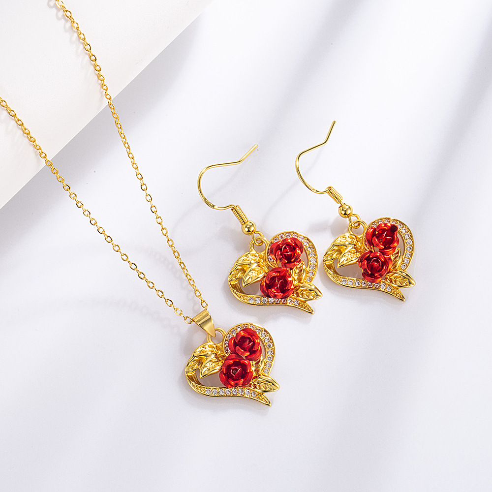 Wish cross-border love rose necklace earrings suit Europe and the United States retro fashion flower leaf jewelry wholesale