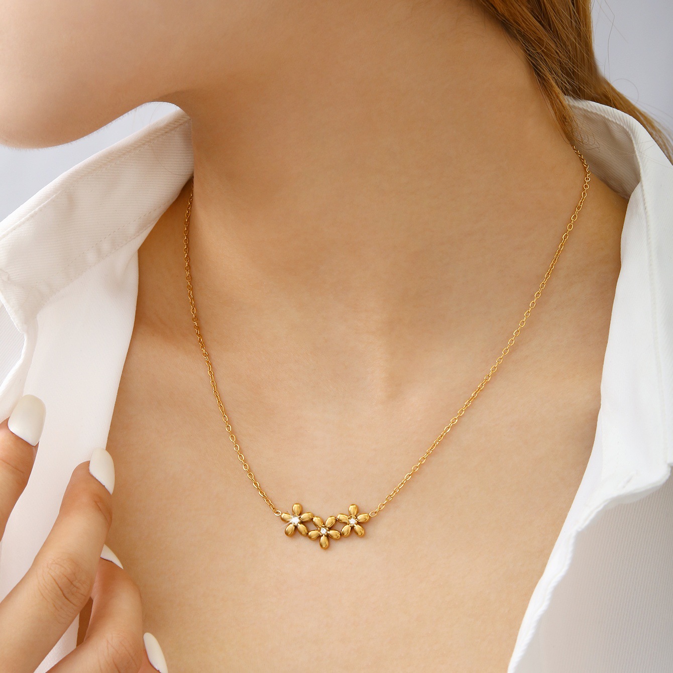 Korean Fashion Simple Flower Diamond Jewelry Set for Women Elegant Stainless Steel 18K Gold Plated Necklace Earrings Jewelry