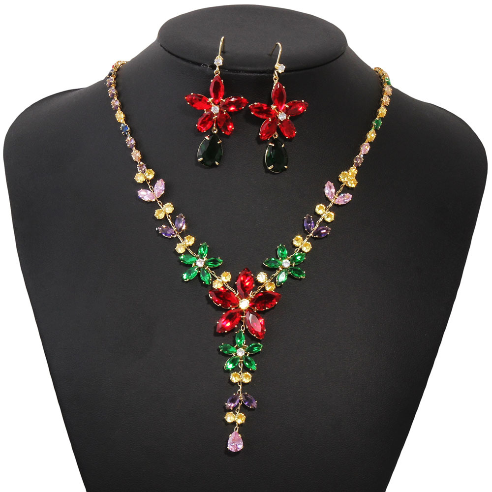 Colorful Zircon Fashion Luxury Necklace Earrings suit Ins Premium Sense Zircon Necklace Christmas Gift Box Gift