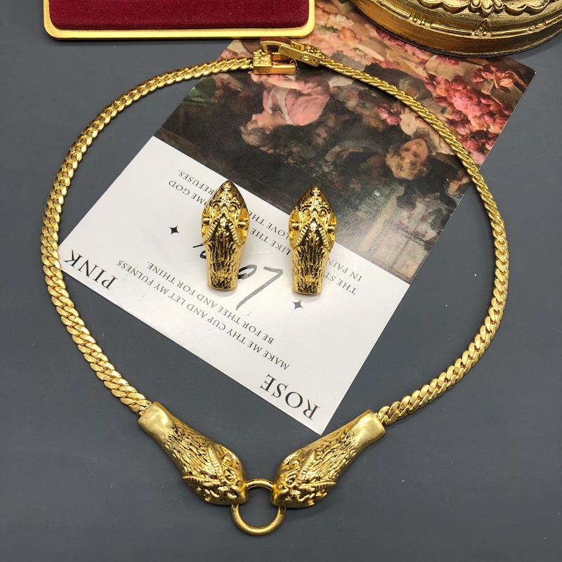 Simple Exquisite Snake Shape Short Necklace Earrings suit Gold Plated Elegant Retro All-match Elegant Jewelry