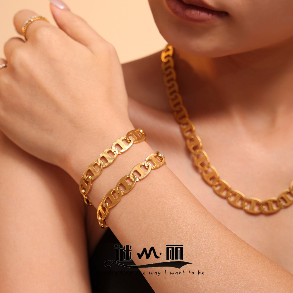 Mystery jewelry ins wind cross-border Japanese word handmade chain plated 18k real gold titanium steel necklace bracelet suit wholesale