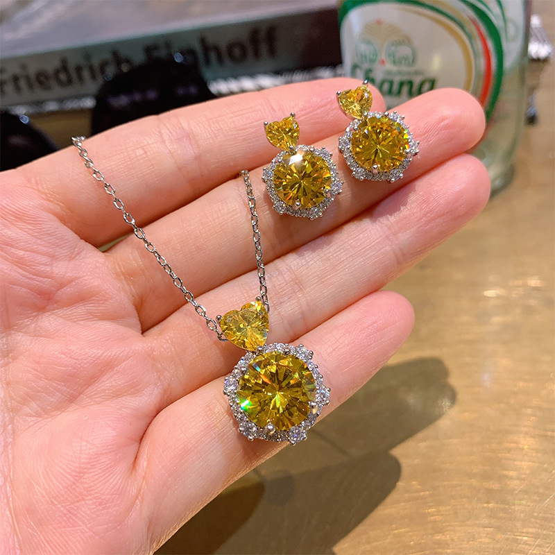 Amazon Simple Yellow Diamond Jewelry Earrings Set Pink Diamond Micro Diamond Exaggerated Earrings Women Jewelry Set Wholesale