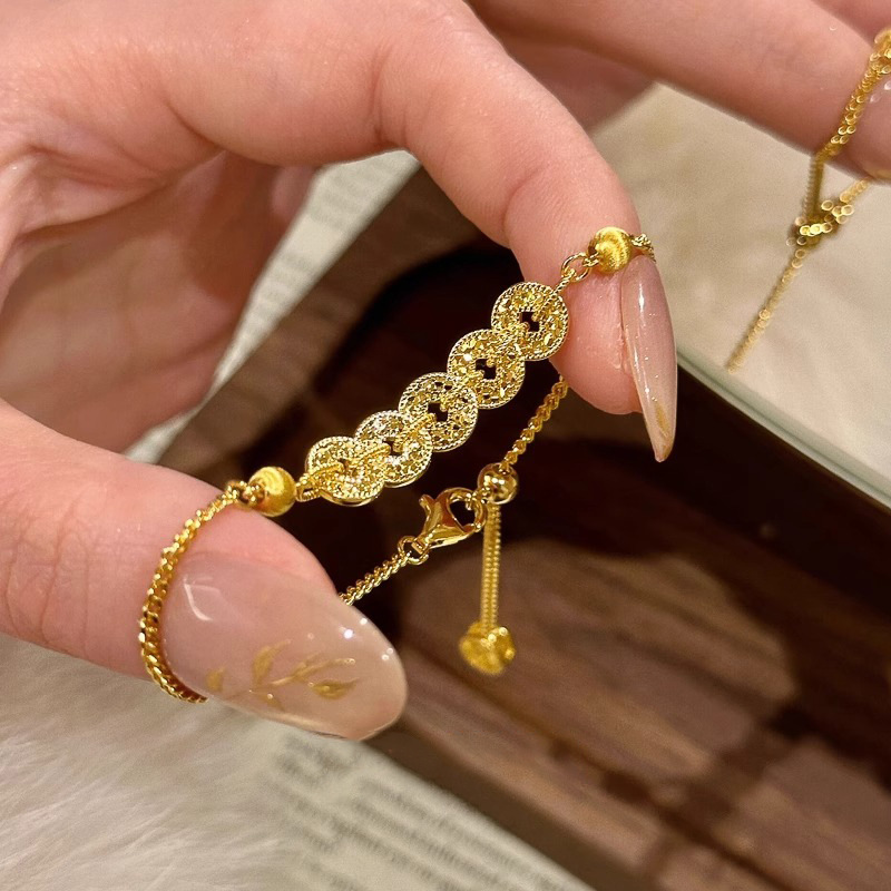 New Chinese Style Copper Coin Fortune Bracelet Ring Necklace Niche Design Sweater Chain Light Luxury High-End Jewelry Set