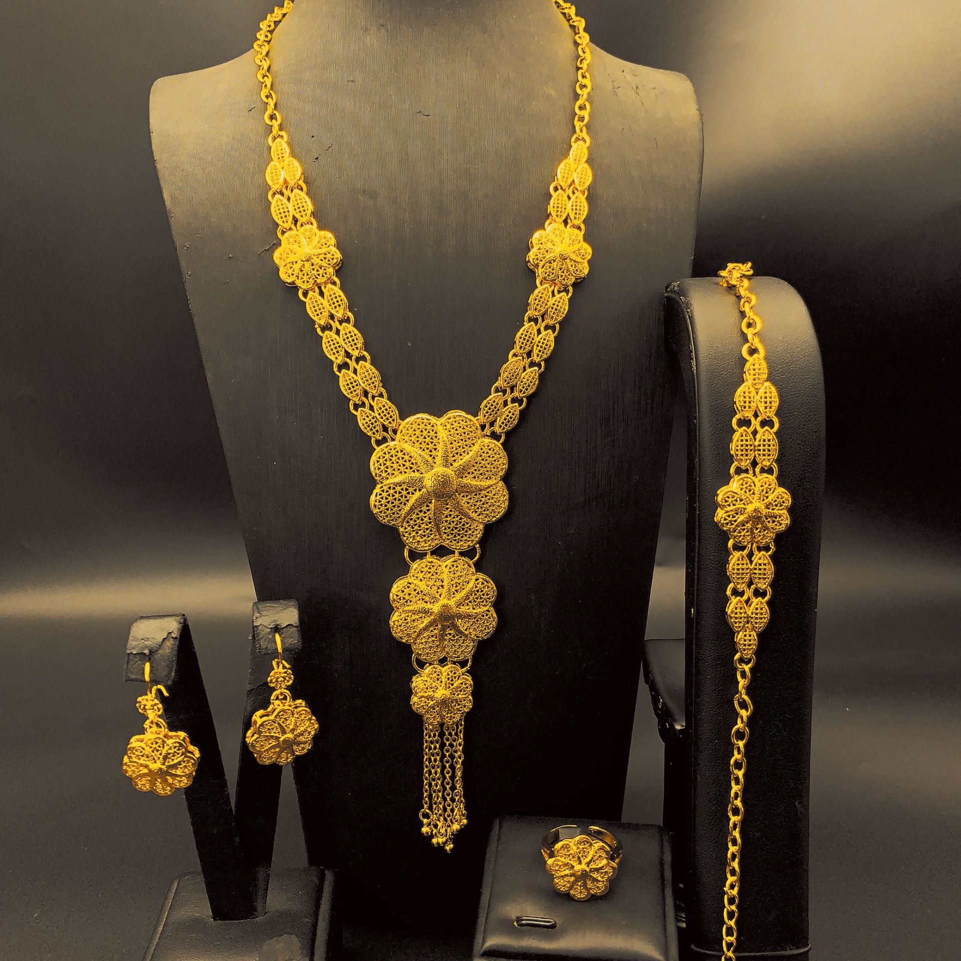 Cross-border delivery Middle East Dubai women's gold-plated necklace earrings ring bracelet wedding jewelry four pieces jewelry suit