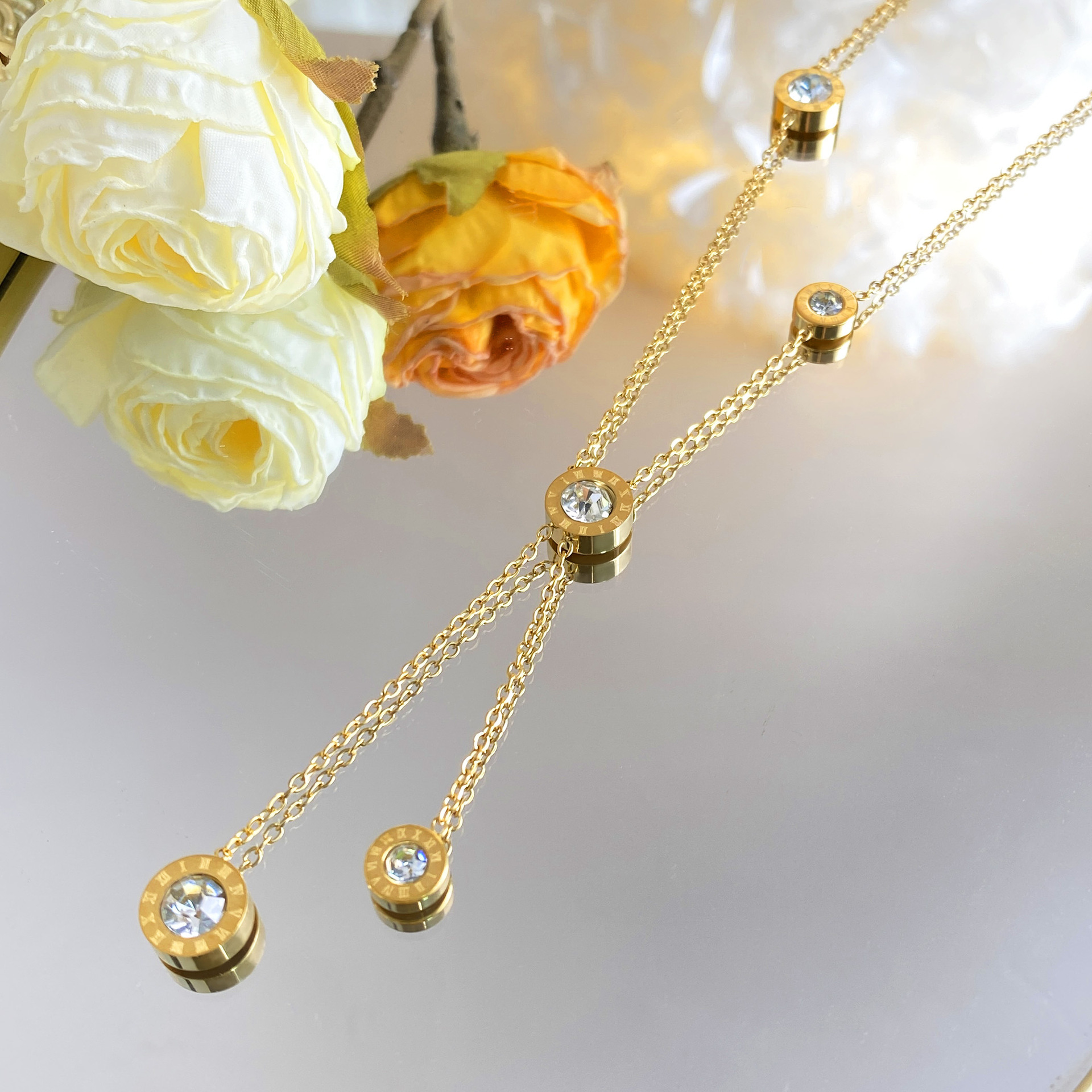 Real Gold Electroplated 18K Light Luxury High Sense Titanium Steel Micro Set White Zircon Roman Necklace Bracelet suit Double Layer Roman