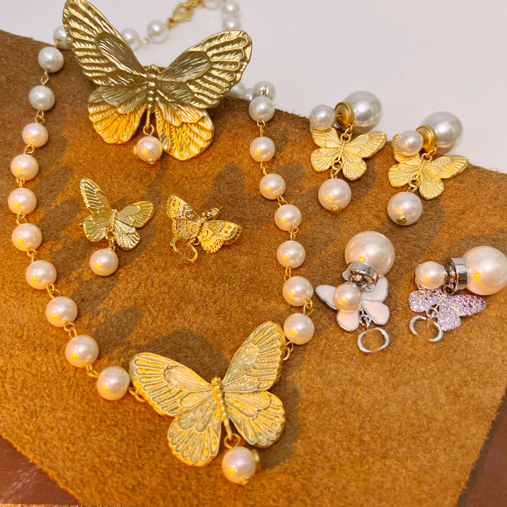 D Home Butterfly Set Series Internet Celebrity Hot Selling Copper Plated Real Gold Earrings Clavicle Chain Necklace High Version Butterfly Earrings