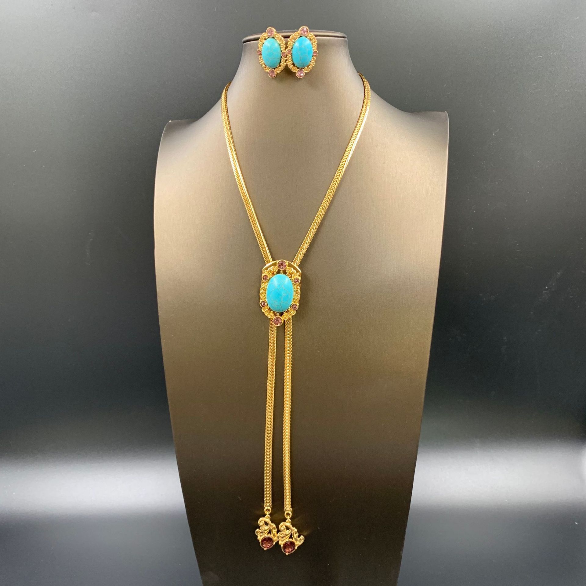 Vintage Western Court Style Pull Design Sweater Chain Turquoise Electroplated Real Gold Quality Set Necklace