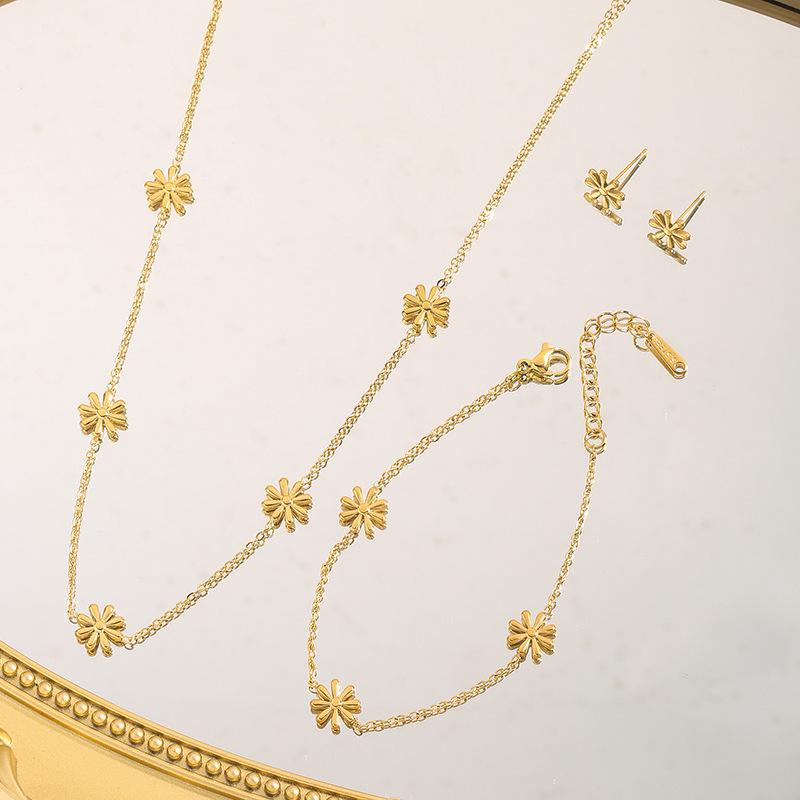 Fairy Temperament Flower Fresh Design Little Daisy Titanium Steel Gold Plated Necklace No Falling Internet Red Blogger Jewelry suit