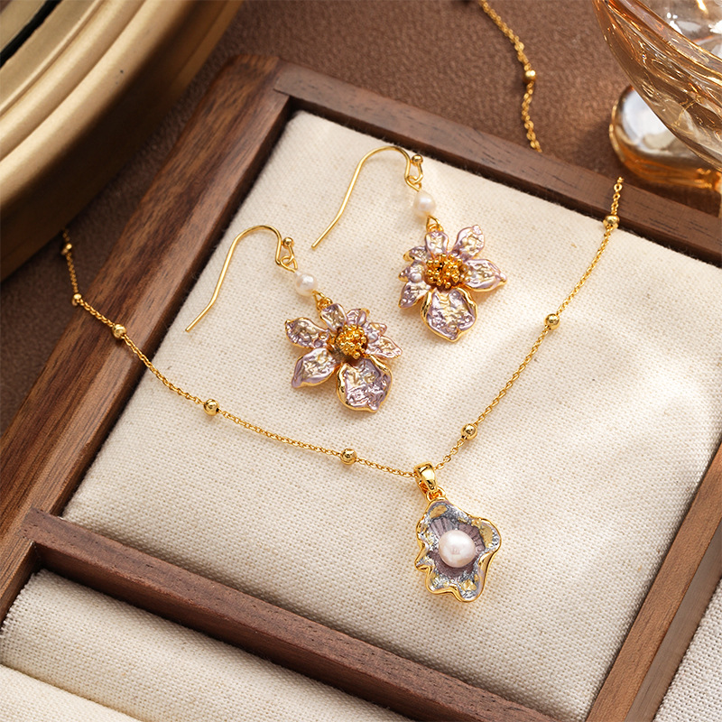 Nala Painted Glaze Flower Earrings and Necklace Set Exquisite Earrings New Chinese Style Necklace for Women Customized