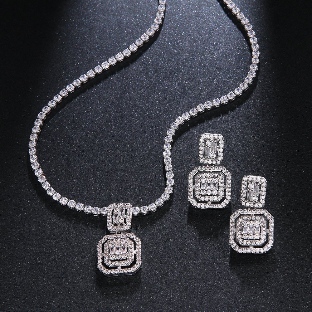 Classic 5A Zircon Pendant Necklace Women Amazon Hot Selling Platinum Necklace Women Love Earrings Set Jewelry