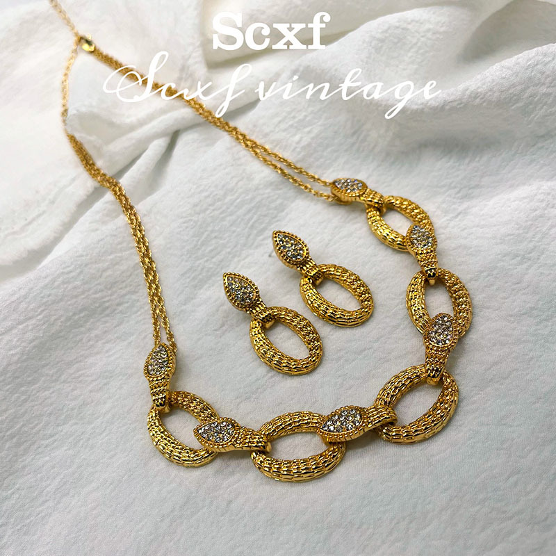 Middle Ancient vintage European and American Fashion Spirit Snake Series Necklace Electroplated Real Gold High-grade Exquisite Necklace Earrings suit