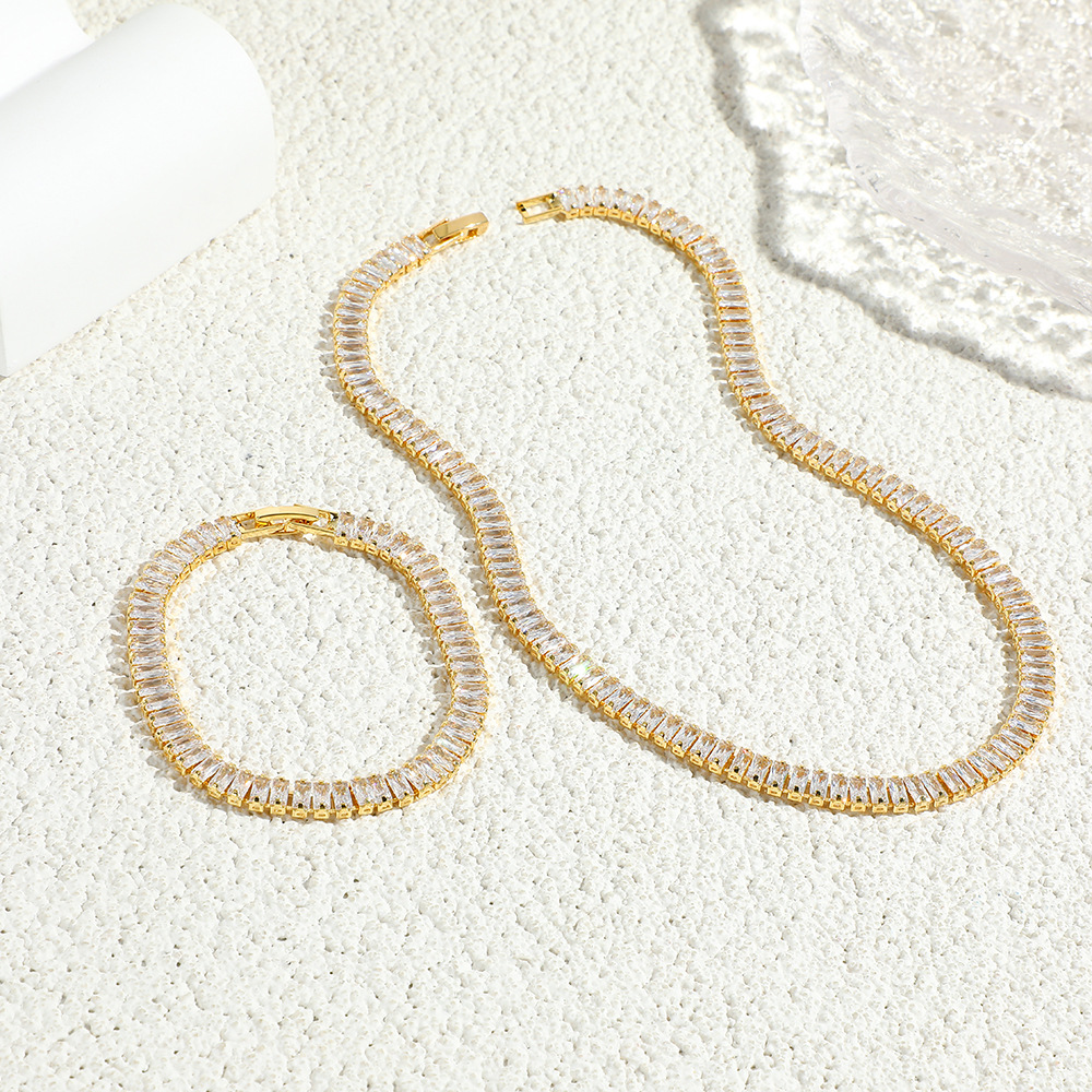 Real Gold electroplated Tennis Chain zircon claw Chain full diamond necklace earrings bracelet three-piece jewelry set suit