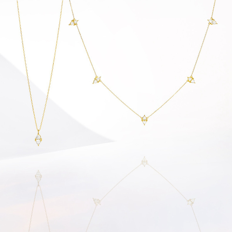 Japanese new multi-pendant kite swaying diamond multi-Triangle Diamond s925 silver plated 14K gold necklace suit