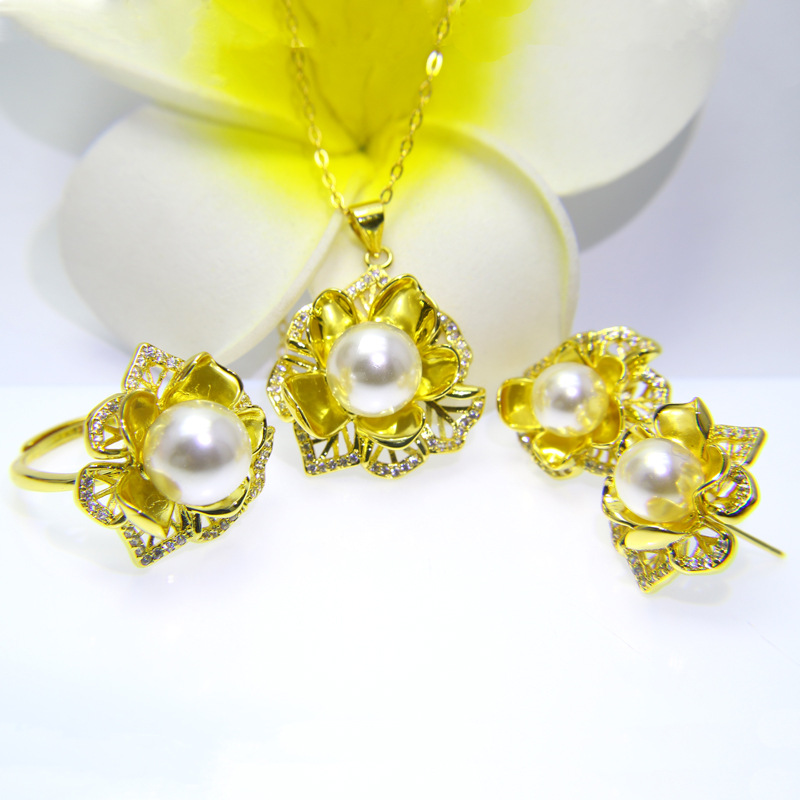 Korean style new Lotus pendant necklace jewelry suit fashionable temperament micro diamond Lotus necklace three pieces suit women